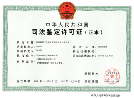 標(biāo)新司法鑒定所隸屬于中國標(biāo)準(zhǔn)化研究院,是一家國有獨(dú)資、面向社會服務(wù)的第三方司法鑒定機(jī)構(gòu),主要從事電子數(shù)據(jù)存在性鑒定、真實(shí)性鑒定、功能性鑒定、相似性鑒定業(yè)務(wù)。標(biāo)新司法鑒定所資質(zhì)齊全,具備司法鑒定許可證(證號:110017154),已通過檢驗(yàn)檢測機(jī)構(gòu)資質(zhì)認(rèn)定(證書編號:180107030669)和實(shí)驗(yàn)室認(rèn)可(資格證號:CNASL12316)。專業(yè)技能扎實(shí),成立以來每年均參加司法部司法鑒定科學(xué)研究院組織的能力驗(yàn)證并獲得滿意評價(jià)結(jié)果。
