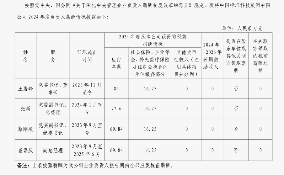 中國標(biāo)準(zhǔn)科技集團有限公司企業(yè)負(fù)責(zé)人2024年度薪酬情況
