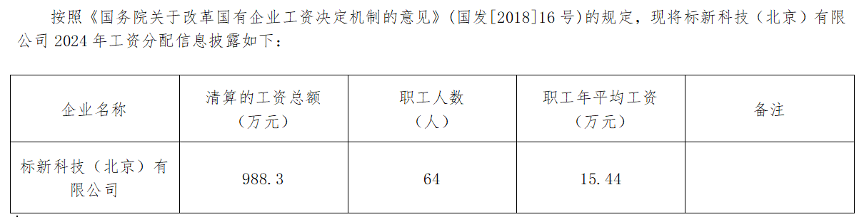 2024年標新科技(北京)有限公司工資分配信息披露