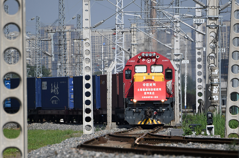 滿載土庫曼斯坦甘草中藥材原料的中歐班列回程列車抵達(dá)西安國際港站(2022年8月31日攝)。新華社記者 李一博 攝