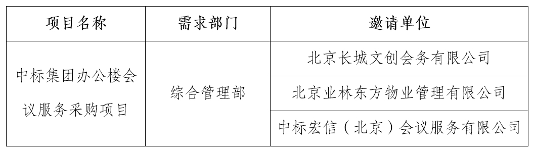 根據《中國標準科技集團有限公司采購工作管理辦法(試行)》的要求,現對中標集團辦公樓會議服務采購項目競爭性談判邀請單位進行公示。