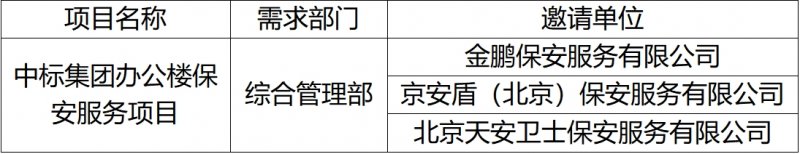 按照《中國標準科技集團有限公司采購工作管理辦法(試行)》要求,現對中標集團辦公樓保安服務項目競爭性談判邀請單位公示。