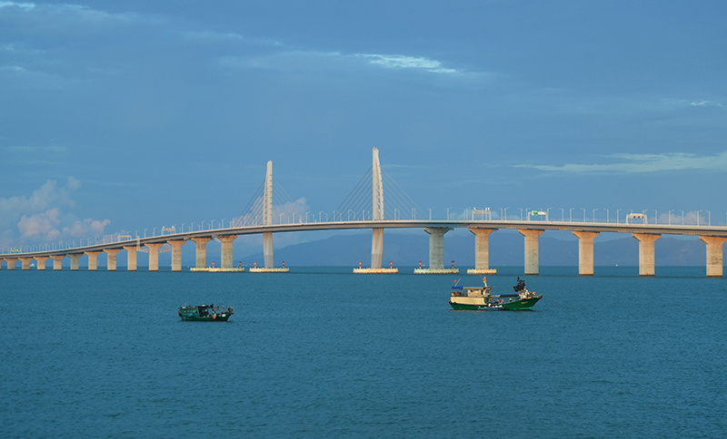 習近平總書記專程前來,親自宣布大橋開通。總書記驅(qū)車沿橋巡覽,登島遠眺,感慨萬千:“這是一座圓夢橋、同心橋、自信橋、復興橋。”