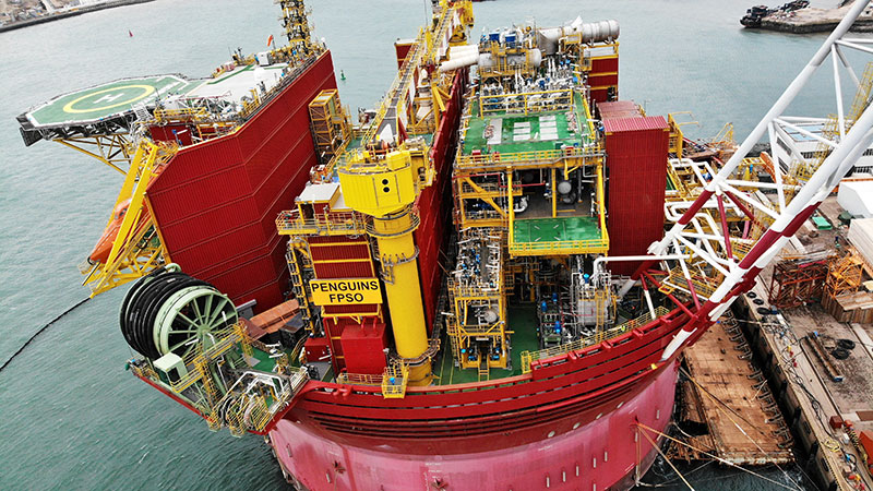當日,由海洋石油工程股份有限公司為英國業主量身定制的“海上油氣巨無霸”——巨型智能集成化圓筒型浮式生產儲卸油裝置(FPSO)在山東青島順利交付。該裝置整體高度118米,總重約3.2萬噸。